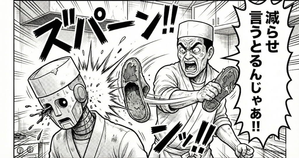 オヤジ「減らせ言うとるんじゃあ!!」(右からスパーン!)