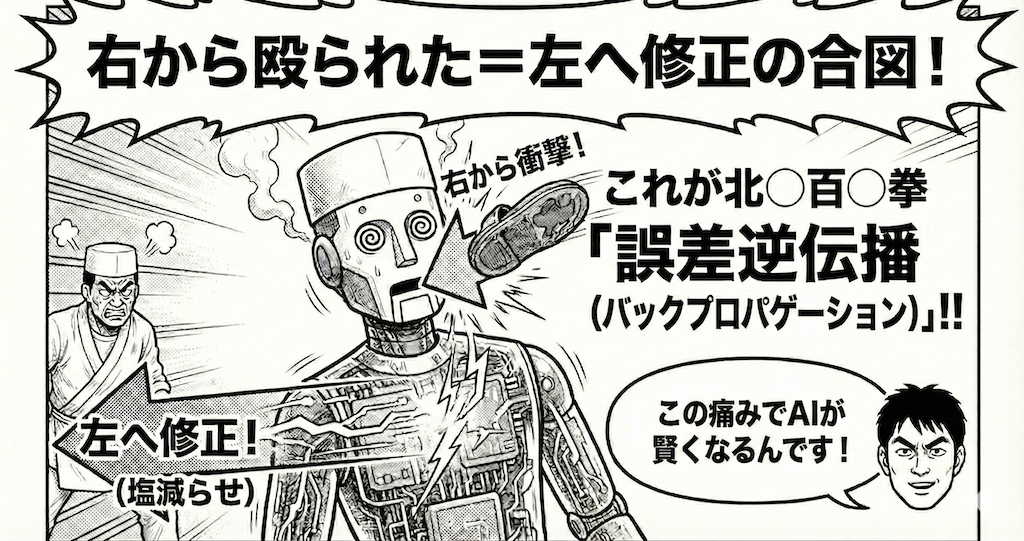 AIが賢くなるプロセス、これを専門用語で「誤差逆伝播法(バックプロパゲーション)」って言うんですけど……名前、いかつ過ぎません?