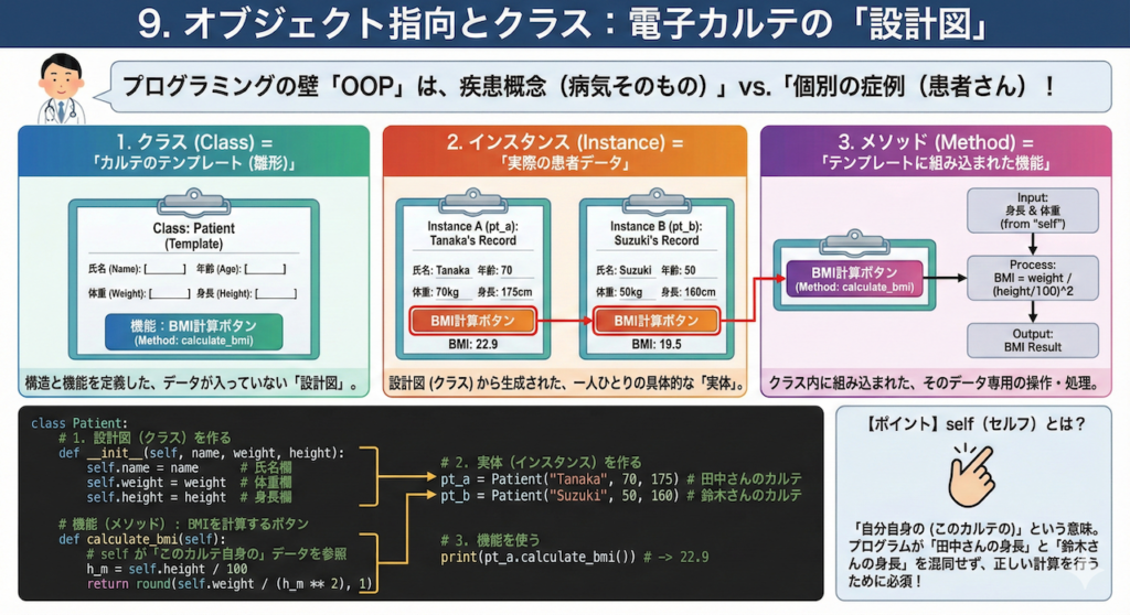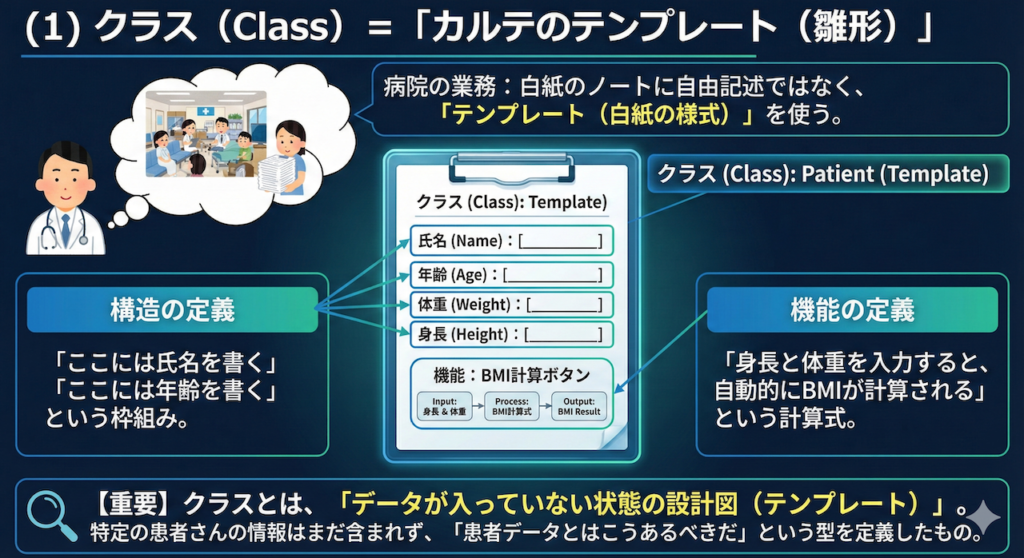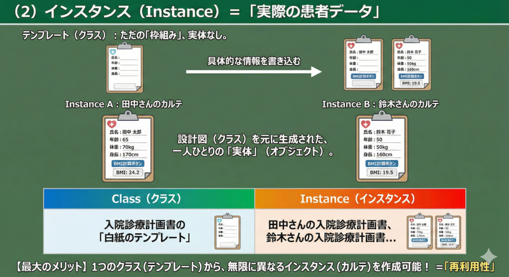 実は、日々「病気(クラス)」という抽象的な疾患概念と、目の前の「患者さん(インスタンス)」という具体的な実体を常に行き来している医師こそ、オブジェクト指向を最も直感的に理解できる職種なのです。