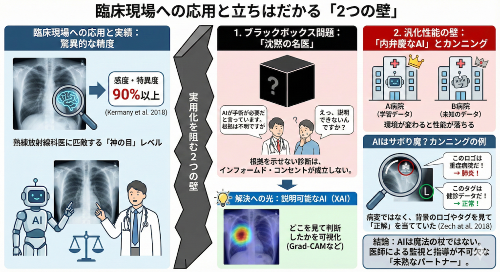 どれほど診断が正確でも、根拠を示せない「ブラックボックス(中身が見えない箱)」のままでは、医療現場では使い物にならないのです。