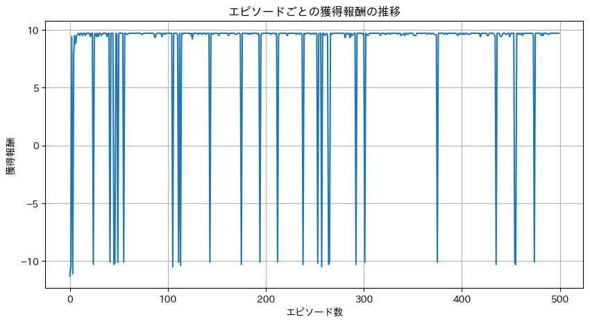 • 移動コスト:1歩動くたびに -0.1 (最短ルートを探させるため)