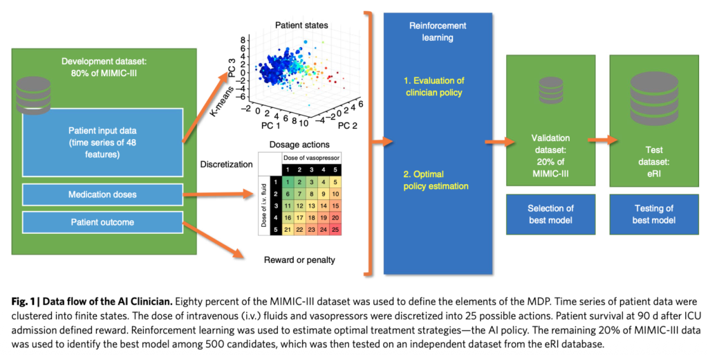 • Komorowski, M., Celi, L.A., Badawi, O., Gordon, A.C. and Faisal, A.A. (2018). The Artificial Intelligence Clinician learns optimal treatment strategies for sepsis in intensive care. Nature Medicine, 24, pp.1716–1720.