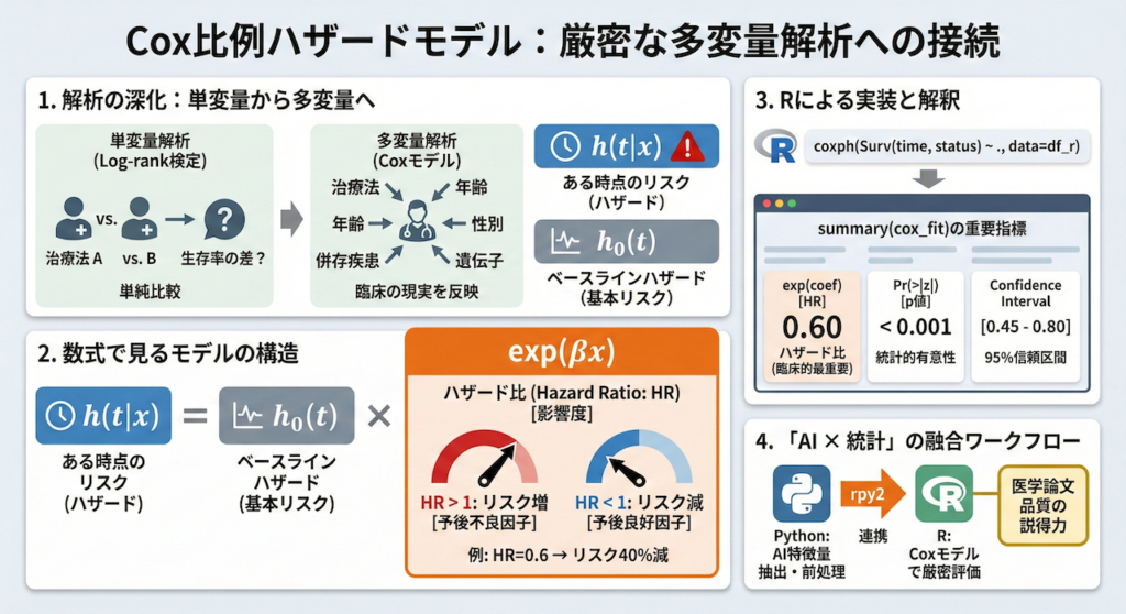 4. 厳密な統計解析への接続:Cox比例ハザードモデル
