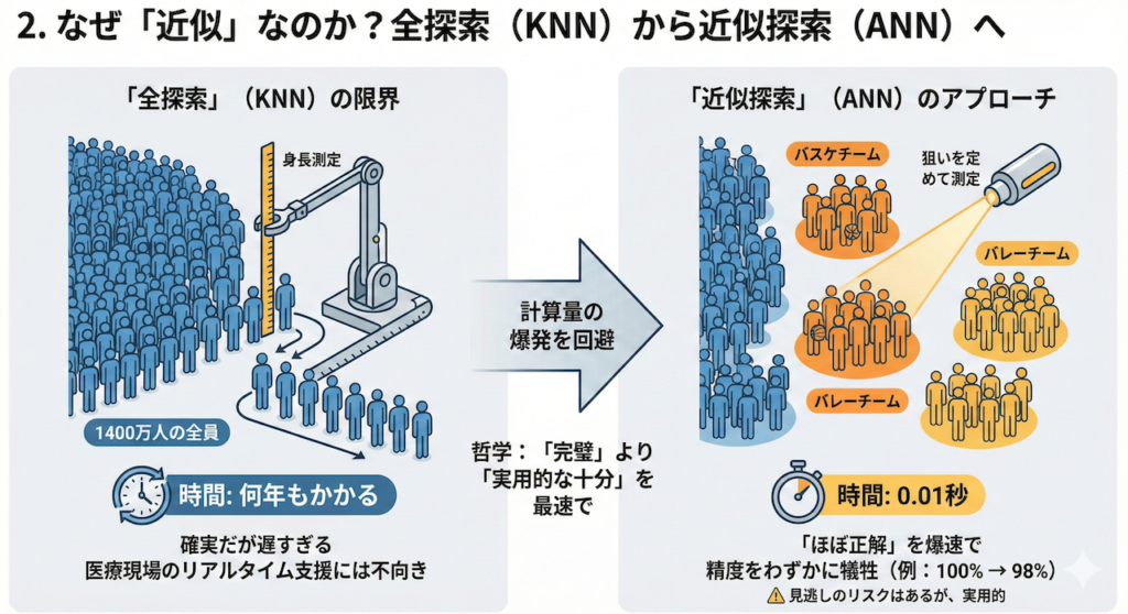 2. なぜ「近似」なのか?:全探索(KNN)から近似探索(ANN)へ