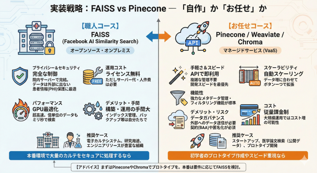 4. 実装戦略:FAISS vs Pinecone ― 「自作」か「お任せ」か