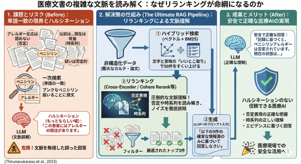 医療文書の複雑な文脈を読み解く:なぜリランキングが命綱になるのか