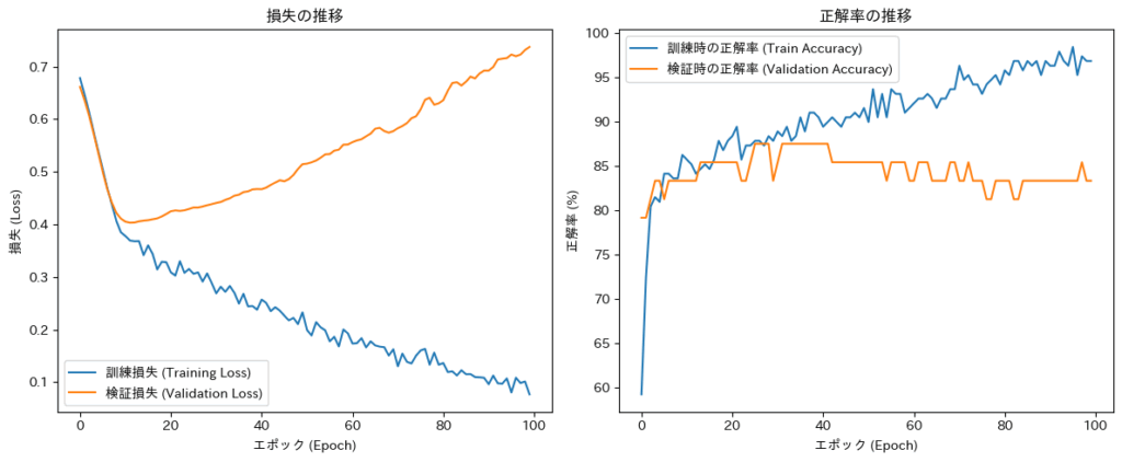 train()とeval()を切り替え、学習曲線を見ながらモデルの状態を診断する重要性を理解しました。 - 総合的な評価: 正解率だけでなく、混同行列やAUCといった多角的な指標でモデルの真の性能を評価しました。