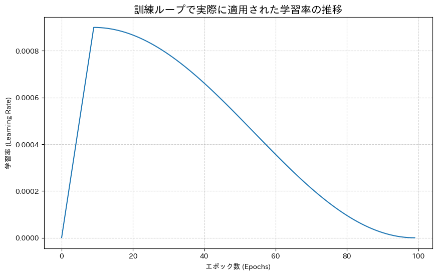 # --- 6. 実際に適用された学習率の推移をプロット ---