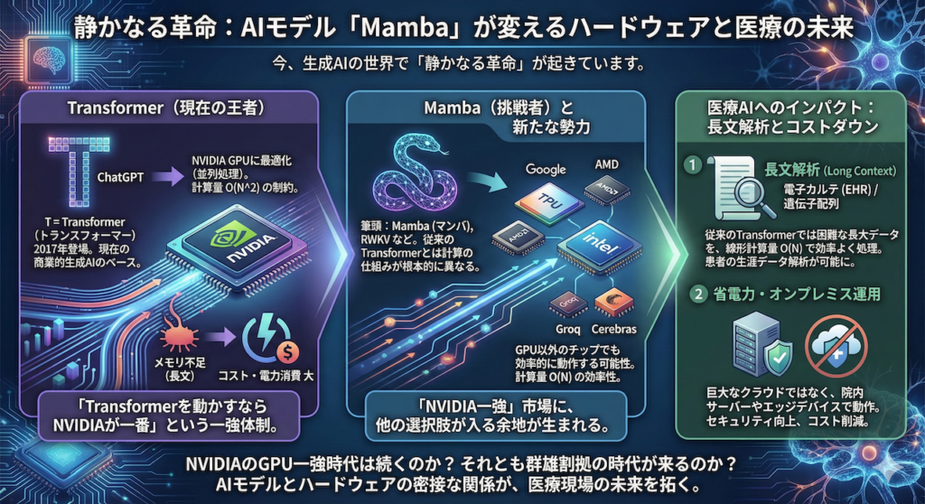 静かなる革命:AIモデル「Mamba」が変えるハードウェアと医療の未来