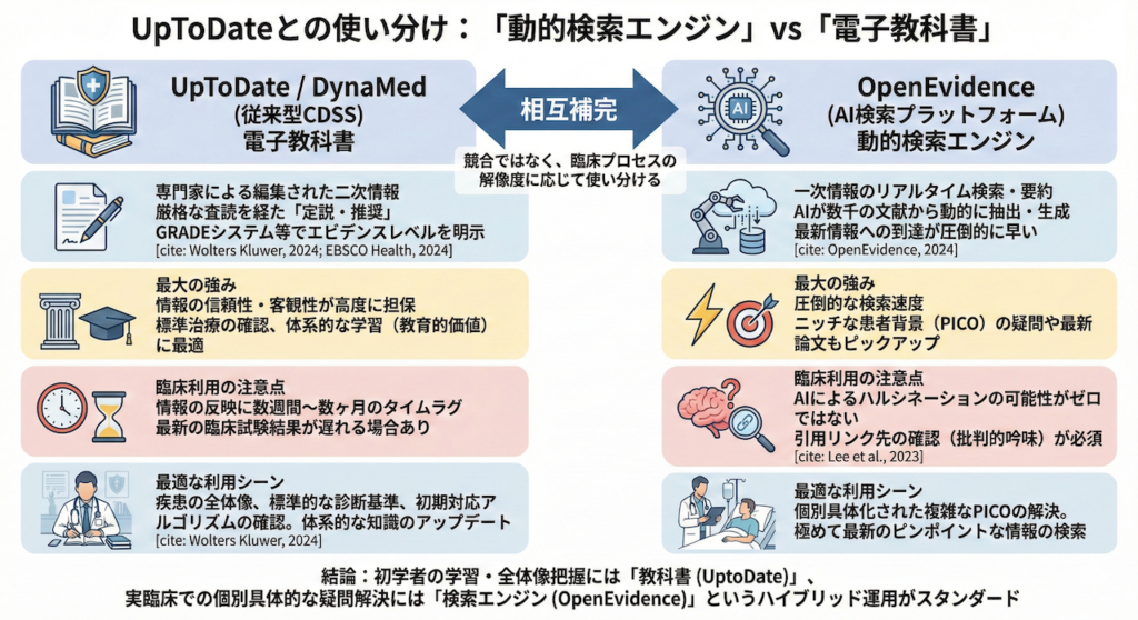 4. UpToDateとの使い分け:「動的検索エンジン」vs「電子教科書」