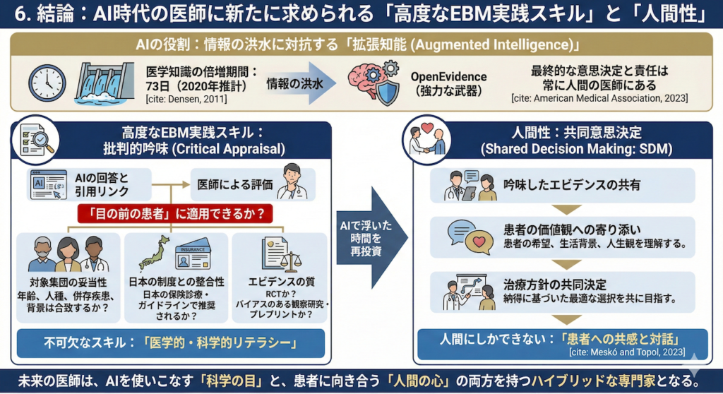 6. 結論:AI時代の医師に新たに求められる「高度なEBM実践スキル」と「人間性」