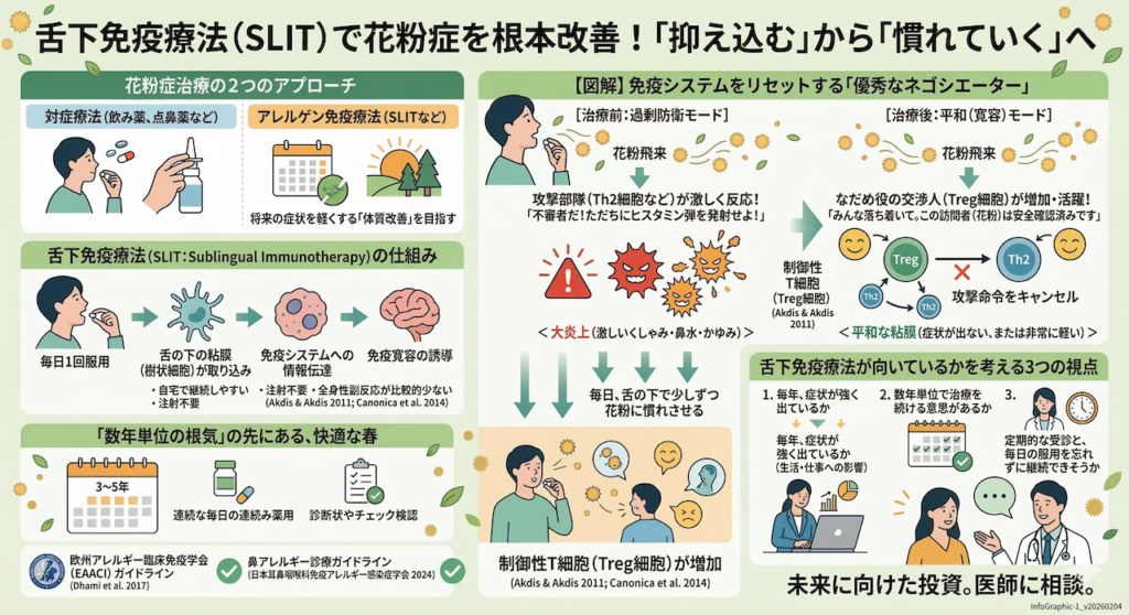 4. 【最新エビデンス】「抑え込む」から「慣れていく」へ。舌下免疫療法(SLIT)