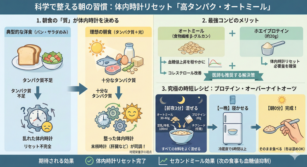 戦略1:体内時計の同調を促す「高タンパク・オートミール」