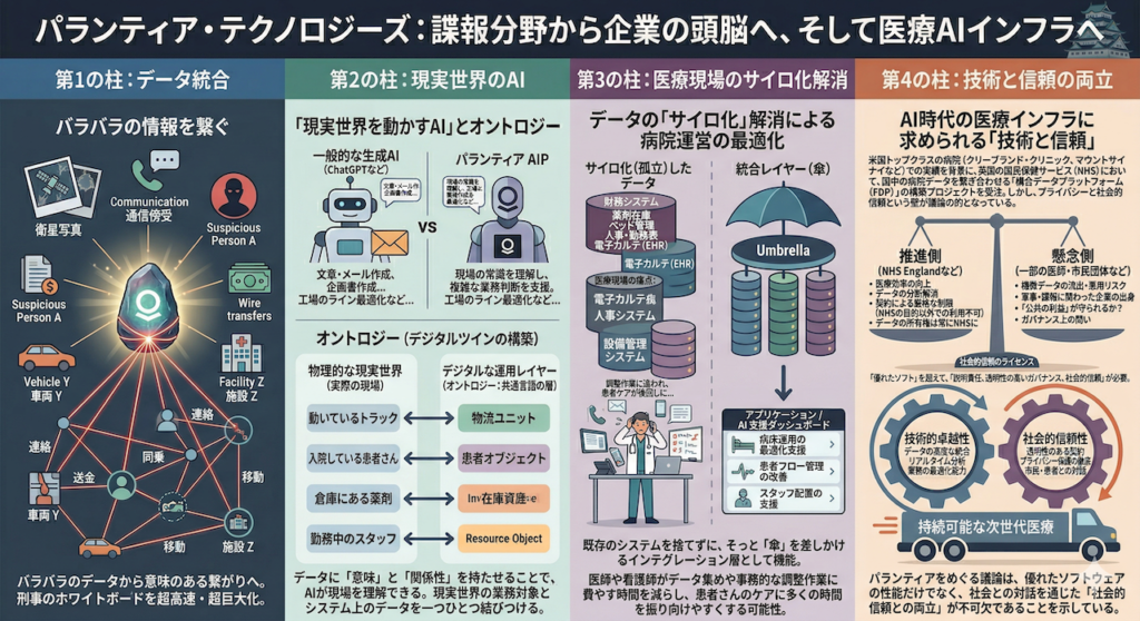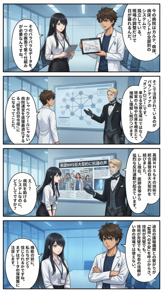 パランティアをめぐる議論は、これからの医療AIインフラに必要なものが、優れたソフトウェアの性能だけでなく、社会との対話を通じた「社会的信頼との両立」であることを示しています。
